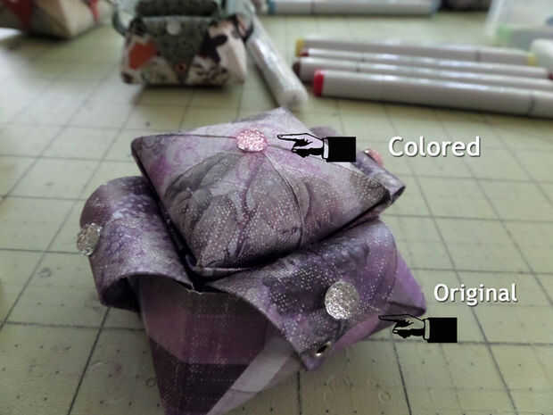 Se nota en la imagen 6 que yo he coloreado la joya superior pero no los lados. Puedes ver cuánto de una diferencia es en el aspecto general. Claro está bien, pero quería colores. Por cierto, estos marcadores vienen con una punta de pincel así como una punta de cincel (marcador). La punta del cincel no funcionaba, así que usé la punta de pincel.