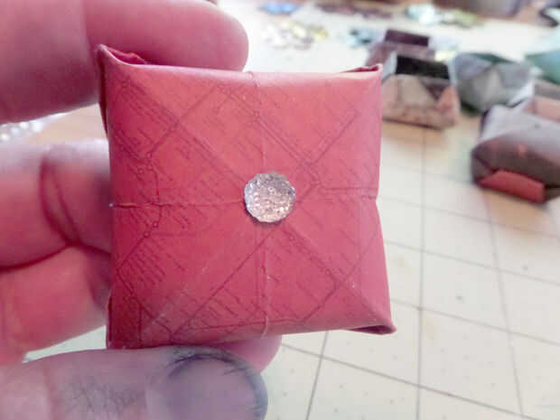 Una vez que lo pones hacia abajo, a poner un dedo dentro debajo de él poder al otro lado del papel y presiónela firmemente. Si le preocupa no se adhieren bien o no tienes joyas autoadhesivas, utilice sólo un punto de la cola de su elección. Que solo estoy apostando en ellos que se pega.