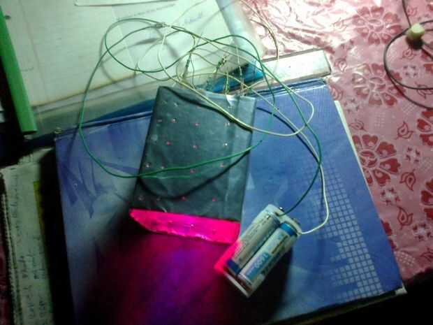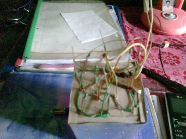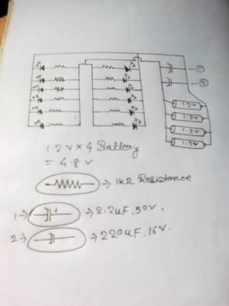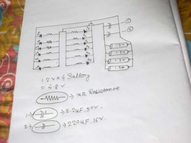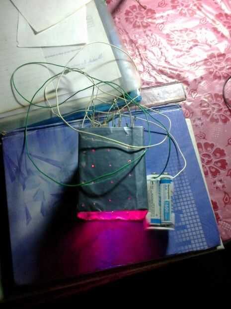 Frist al led en el soporte del tablero y conectar cada 1k resistencia a led de ánodo y dar positivo fuente conducida a través de la resistencia después de cada sonda de kathod conectar nagetive individuales después de que éstos conectan el bettery para hacer luz...
