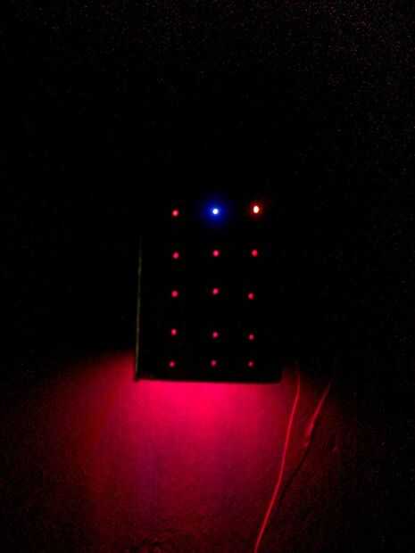 Tiene 12 LEDs (10 rojos, 2 azules), 12 resistencias de 1K, necesita Bettery: 4-9 voltios para hacer luz...