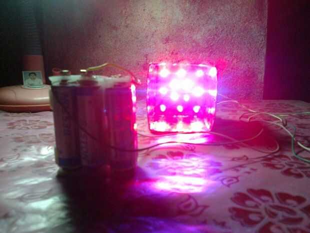 Después de todo este paso el punto del cátodo se conecta con la batería punto negativo y el otro punto del ánodo circuito de conectan con la fuente de positivo de batería y mi cubo de LED para decoración o iluminación...