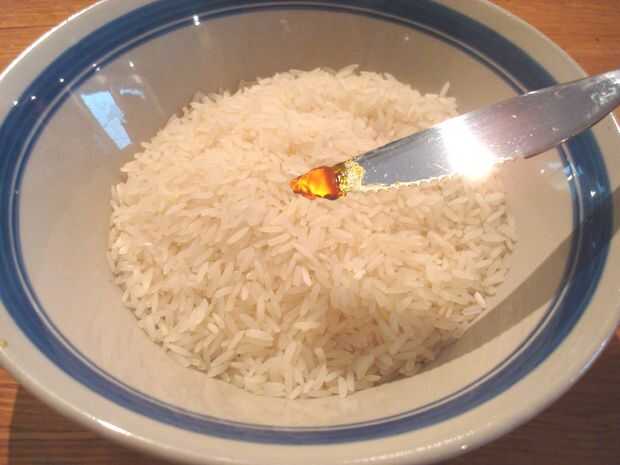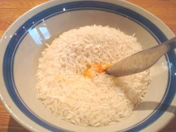 Una vez que hayas alcanzado el color deseado pone el arroz en un trozo de papel de cera. Dejar el arroz hasta que esté completamente seca.