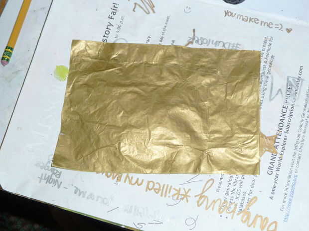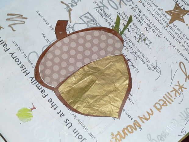Tomar su papel y pégalo. Debe tener un rectángulo. Trace una línea alrededor de la plantilla de la pieza de abajo y cortar la forma. Pegamento en el revés y dejar secar.