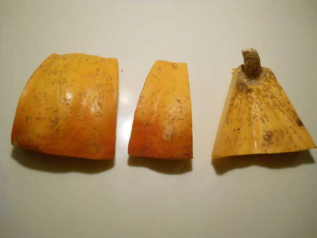 Si usted tiene una calabaza cortada en trocitos quitar todo el interior hasta el externo de la calabaza es 3-4 cms Un tejido, reblandecerlos mediante la adición de agua y luego limpiar la calabaza en la capa externa de la calabaza