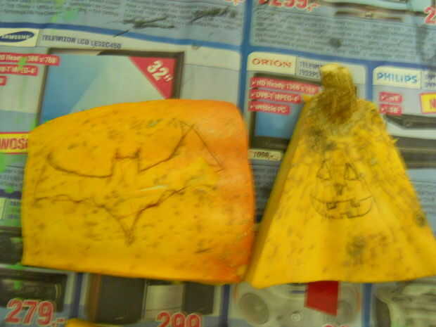 este año para Halloween hice una gato-o-linterna que sopla vapor de agua de hielo seco. Un amigo me dio la vuelta a http://www.pumpkingutter.com. Pensé que era increíble pero pensé que era mucho más allá de mis capacidades artísticamente hablando. En