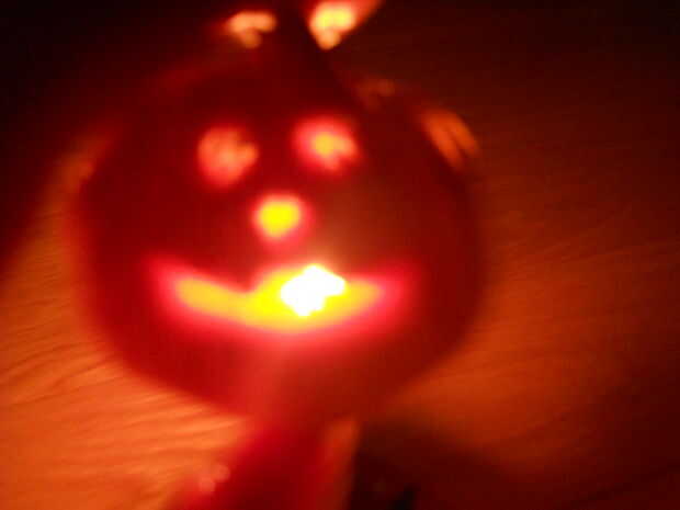 Tomar cualquier color de LED que desee y pega detrás de la calabaza