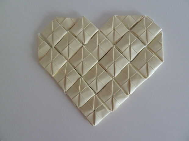 estaba tratando de usar un módulo de origami que utilizo mucho (por ejemplo aquí y aquí) para hacer decoraciones. Sabía que yo podría hacer planos cuadrados y triángulos con él, así que me di cuenta de corazones deben ser posibles hacer con ellos. Sacó el corazón, para saber cuántos tendría y doblar las piezas. El primer momento poner juntos fue un poco caótico, pero entonces supe exactamente qué mirar cuando mi corazón siguiente. El primero que hice fue el corazón blanco. Como se puede ver en la esquina superior izquierda, las plazas no son realmente al lado de uno. El segundo que hice, el rojo se fue parte de un intercambio de regalos de Navidad. Resultó quería que fuese así. ¡ Disfrute!