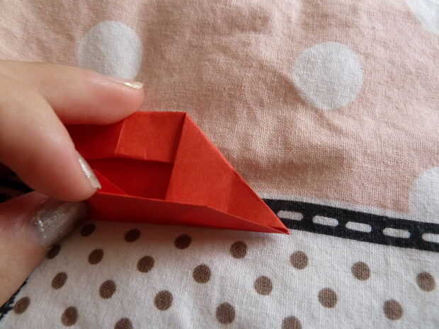 Start by taking one of your squares. Doblar por la mitad diagonalmente y despliegue, doblar por la mitad diagonalmente de la otra manera y dejar el pliegue hay. Doblar las esquinas que están ahora en la parte inferior a la mitad. A continuación doble la línea de fondo ahora hasta la mitad. Repetir este proceso en el otro lado. Desdoblar el pliegue diagonal que había dejado allí al principio. Doblar en las esquinas. Luego, doble hacia abajo la esquina superior derecha y meta como se muestra. La vuelta la pieza a repetirlo en el otro lado. Para completar el módulo, doblar las esquinas.