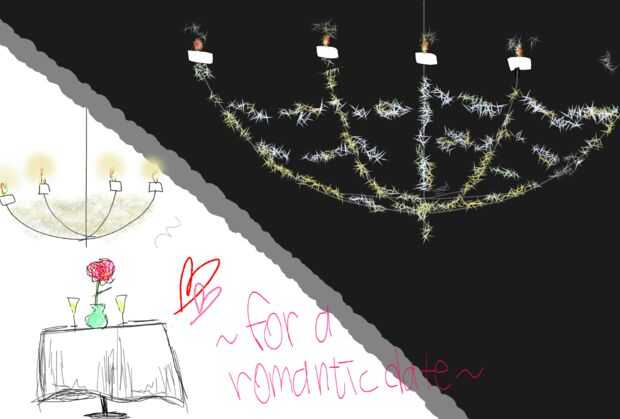 ☆Use pistola de pegamento para colocar velas de té-luz falsas en los extremos de cada brazo de la sombrilla