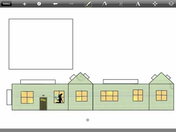 Utilizando rellenos de inundación colorear la casa y las ventanas. Ser creativo con vidrio roto y telas de araña.