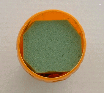 Con un cuchillo cortar la espuma y colóquelo en el recipiente. La espuma debe sentarse firmemente y un poco más bajo que el borde del contenedor. Si su envase es ligero, por ejemplo un plástico uno, tendrá que añadir peso a la parte inferior del envase, trabajan algunas rocas de su patio trasero.
