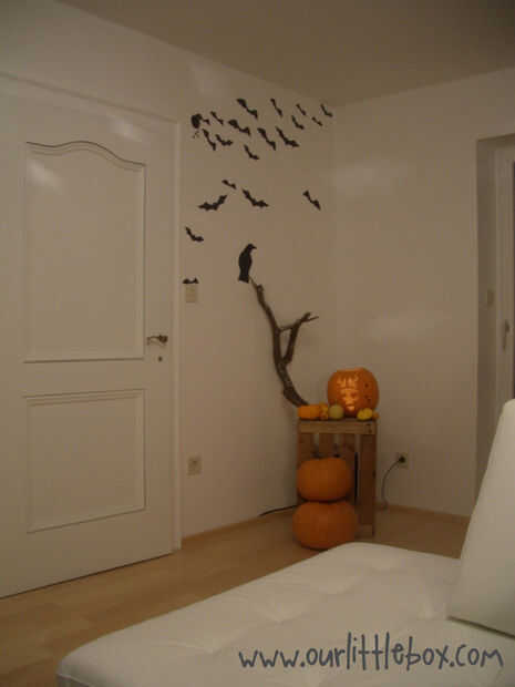 cómo crear un sencillo pero impresionante Halloween esquina con papel murciélagos y un cuervo de papel.