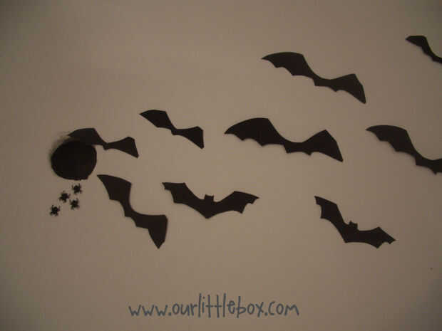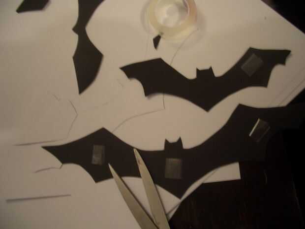 Formar bucles pequeños que se adhieren a la parte posterior de sus recortes de tiras de cinta. Pegarse los murciélagos de papel en la pared teniendo en la parte superior de tercera de la pared.