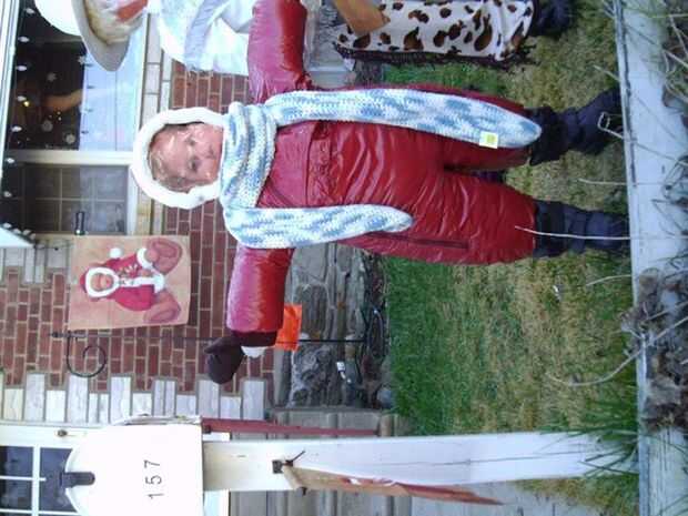 He utilizado pegamento caliente palos cortan y pegan detrás por lo que se parecen a los dedos. Luego los rellenas en un guante y me caliente había pegado el guante en el interior de la chaqueta. Tomé un sombrero que parecía cerca de lo que realmente llevaban