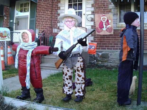 Os adjunto los soportes de esquina para el PVC y luego screwes el soporte a la estructura. Añadí una chaqueta y relleno de periódico y trapos hasta que parecía realista.