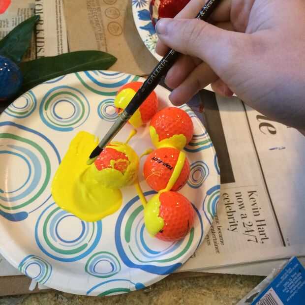 Puede que necesite hacerlo en 2 rondas. El primero, pintar la mayoría de las bolas de golf y el segundo a obtener el lugar de la pelota de golf que estaba en la placa de papel.