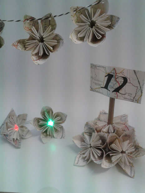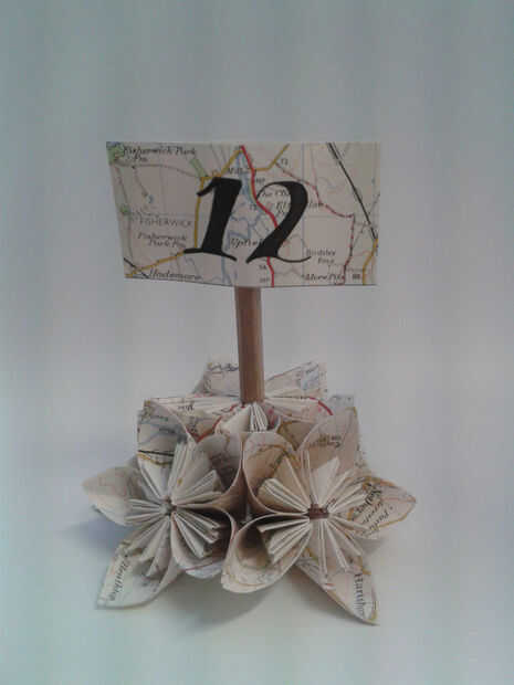 Se puede utilizar cualquier papel de su elección. He utilizado páginas mapa para mina, perfecto para una boda con temática de viajes, o si hay un lugar con especial importancia a la novia o novio. Mapas antiguos son de valor limitado - archivo histórico ya tiene sus copias, son un poco de curiosidad, pero aparte de eso, no tienen ningún valor financiero y son de ninguna utilidad para la persona promedio. Muchas tiendas de caridad pueden apenas regalarlos, pero son interesantes y pueden ser muy atractivas. Me encanta las británica Ordnance Survey maps. Pero hay muchos otros tipos de papel que se puede utilizar - páginas del libro, partituras, libros de historietas, papel estampado o papel a color para que coincida con el tema de la boda! Así que mientras estoy usando mapas de 40 años, no dude en utilizar lo que te gusta :)
