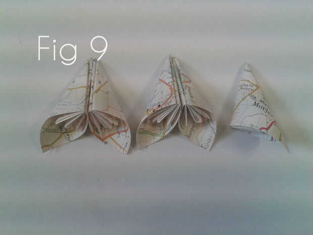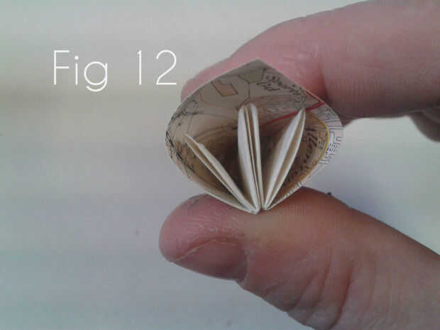 Si usted encuentra que sus pétalos son un poco planos, usted puede apretar suavemente los en forma antes de pegar (Fig 12). Si usted está haciendo luces, unir cuatro de los pétalos pero no agregue el quinto todavía!
