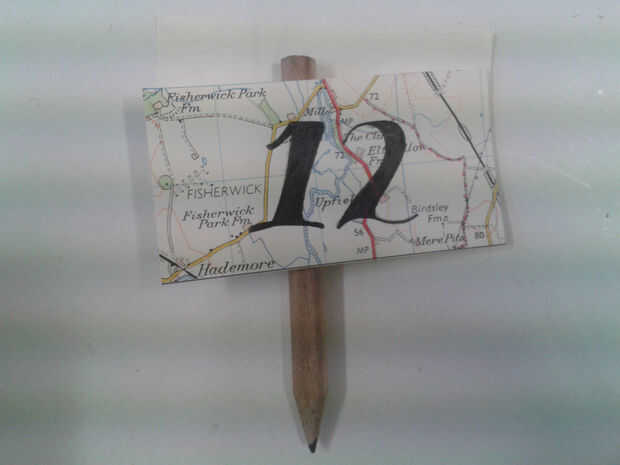 Una vez que todas las flores se pegan, utilizarlo como es o hacer un número de mesa en. Crear un indicador de número de mesa y pegar un taco (o en un impulso, un lápiz). Stand en el centro de la flor central para completar su pieza central.