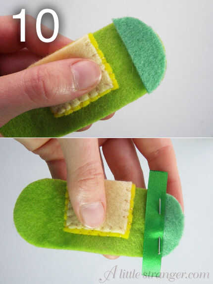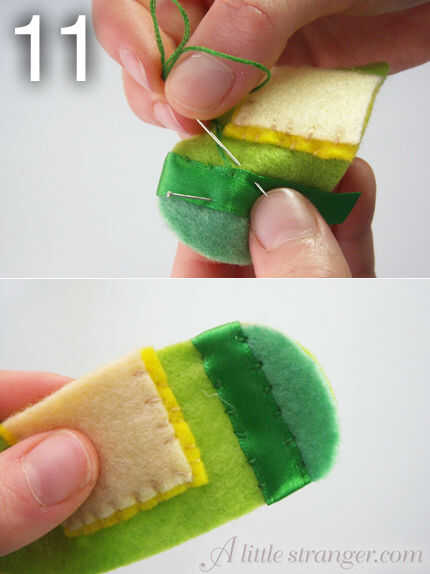 11) usar hilo de bordar y uniformemente espacios puntadas para coser la cinta en. Esto también evitará las tapas en su lugar.