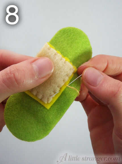 8) coser la cara sobre el uso de hilo de bordar. Uso limpio espacios uniformemente puntadas todo el camino alrededor