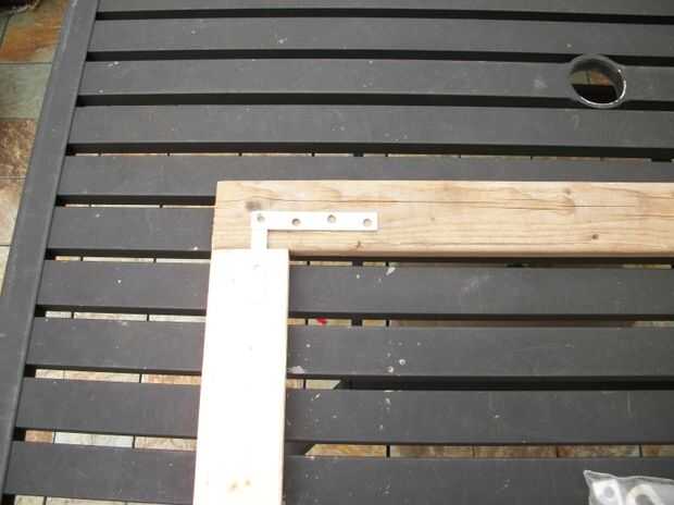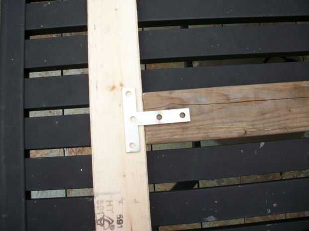 Colocar ángulos de acero y t-llaves en articulaciones y fije con tornillos para madera.