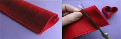 Voltee al otro lado, asegúrese de que el borde cosido interior; coser el otro lado. Corte una tira de fieltro de través, se realiza la forma del corazón.