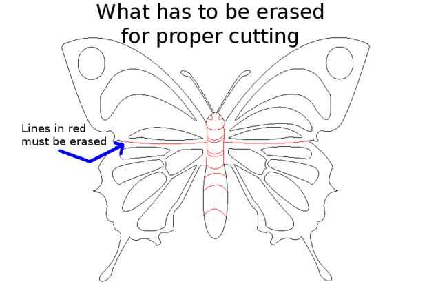 Una vez que la imagen de la derecha (mina aquí), quizás tendrás que limpia si no es 100% utilizable como es. Echa un vistazo a la segunda imagen y verás lo que está mal: algunas líneas hacen imposible cortarlo correctamente (es decir: sin algunas partes cayendo a pedazos o por el contrario: colgando mientras se suponía caer aparte). La tercera imagen muestra exactamente las líneas que deben ser borrados.
