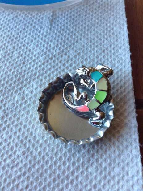 Ahora pegue los encantos en la tapa de la botella donde quieras.