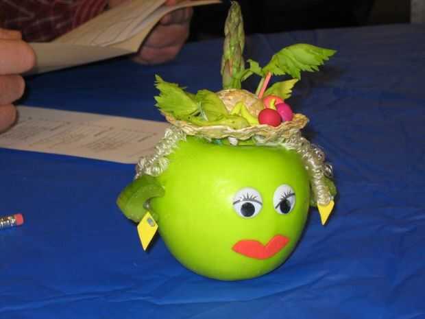 mi esposa y yo tenía la tarea de hacer decoraciones para la mesa para una fiesta de iglesia. El tema de la fiesta tuvo mucho que ver con alimentos interesantes, naturalmente que hemos visitado la sección de productos de la tienda de comestibles para nuestra materia prima. Utilizando un conjunto barato de platos de plástico desechables, apio, espárragos, tomates, zanahorias, pepinos, aceitunas, manzanas, maíz, etc., llegamos a lo que resultó para ser un sistema barato, interesante de decoración.