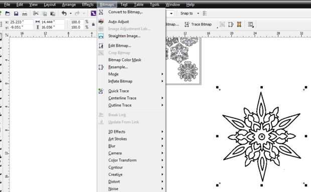 Entonces, cuando en Corel Draw, solo uso la función "mapas de bits" -> trace y voila'!
