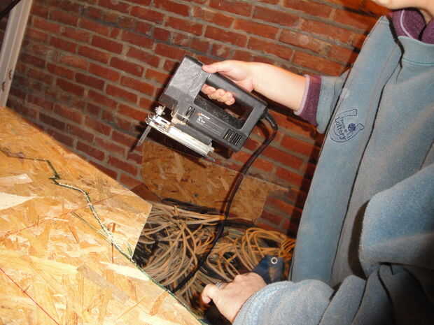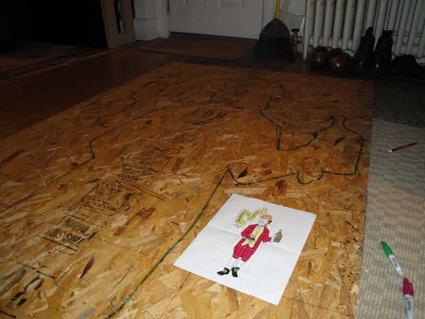 2. Esboce el contorno de las piezas sobre la madera contrachapada de. La rejilla en su bosquejo de la fuente debe hacerlo más fácil de hacer.
