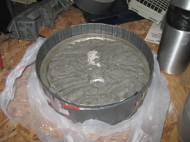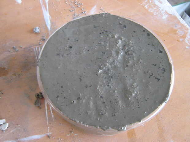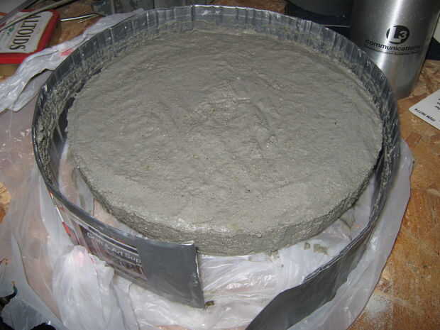 Deje que el sit de cemento durante unas horas hasta que el cemento está configurado. Una vez que el cemento está configurado, puede quitar el cartón y la lata de pastel.