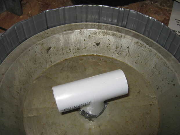 Coloqué el 3/4" PVC T en el centro de la lata de pastel.