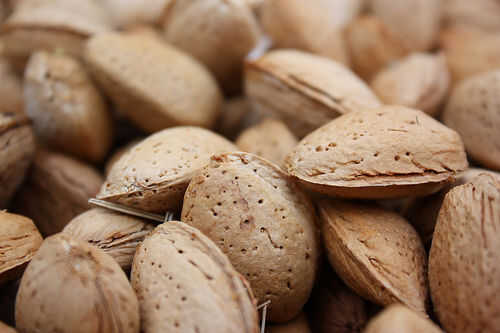 La primera cosa que necesitas son almendras, tomar tantas como necesites. Después de las almendras me salió con unas tijeras y comencé a cortar hojas y ramas que me ha gustado. Realmente no sé el nombre de las plantas que utilizan pero se les pueden ver en las imágenes y, de todos modos, puede utilizar cualquier planta que piensas que es hermosa. Usé algunas hojas rojas y una especie de ramas con muchas hojas verdes pequeñas y también algunas ramas para apoyar todo lo.
