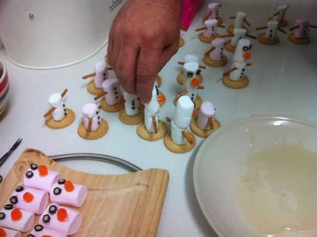 Decoradas postres - muñecos de nieve de melcocha (9 / 10 paso)
