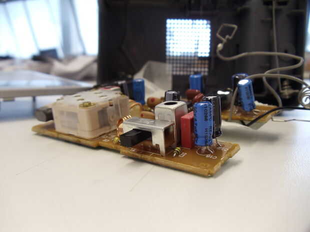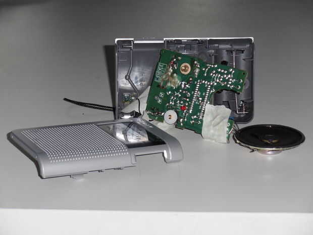 El circuito utilizado ha sido tomado y modificado de una radio básica, anterior. Vale la pena tirar aparte la radio cuidadosamente con destornilladores de precisión para separar el interior desde el exterior. Cuando los circuitos se han retirado de la vieja radio, desecho el cuerpo y compruebe si el circuito aún funciona correctamente. Es mejor dejar la modificación de circuito hasta el final ya que se tiene que ser montado alrededor del cuerpo de radio nuevo que se crea.