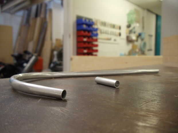 Usé un vaso como mi curva para doblar el tubo. Asegúrese de que esto se hace aunque lenta y cuidadosamente para no hebilla de aluminio.