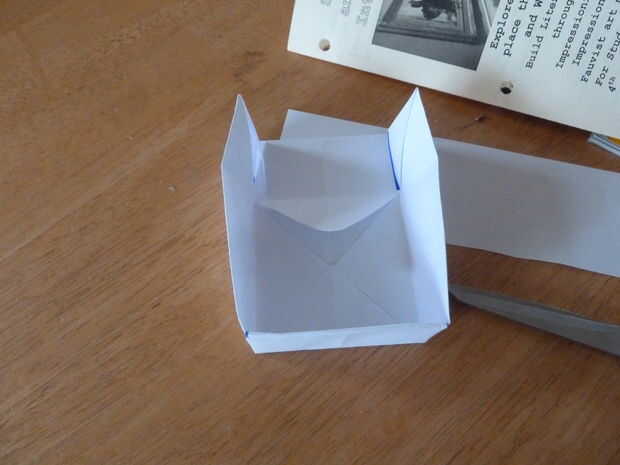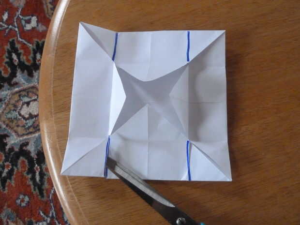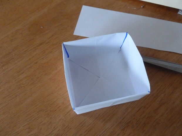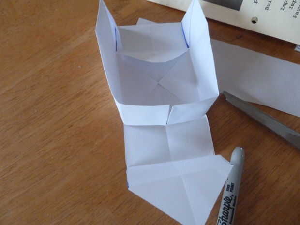 Cortar las piezas presentes en la imagen y tire de la solapa al lado de dos de las piezas de corte paralelas entre sí, como se muestra. Debería ver cuatro cuadrados que se formaron cuando usted corta en la línea resaltada. Doblar las dos plazas que estaban más próxima a la solapa que se dobla para arriba para arriba y luego a 90 grados. Luego, doblar la aleta que bajada parte posteriora otra vez excepto que esta vez sobre las plazas. Luego hacer lo mismo excepto que esta vez en el otro lado. Lo que usted acaba de hacer debe parecerse a una caja. Pero aún no está hecho...