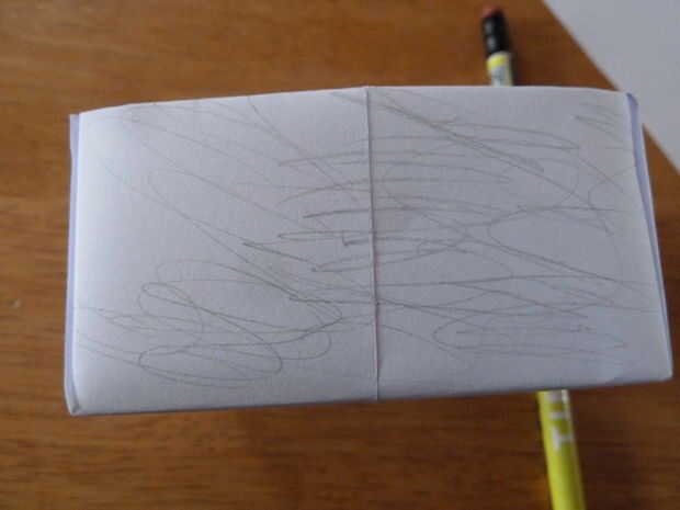 Sombra en muy ligeramente las piezas de la caja que quieres decorar. A continuación, despliegue el cuadro. no!!! Borrar las partes que desea decorar y dibujar lo que desea dibujar. Luego dobla el papel a la caja usando los pliegues.