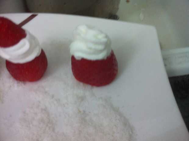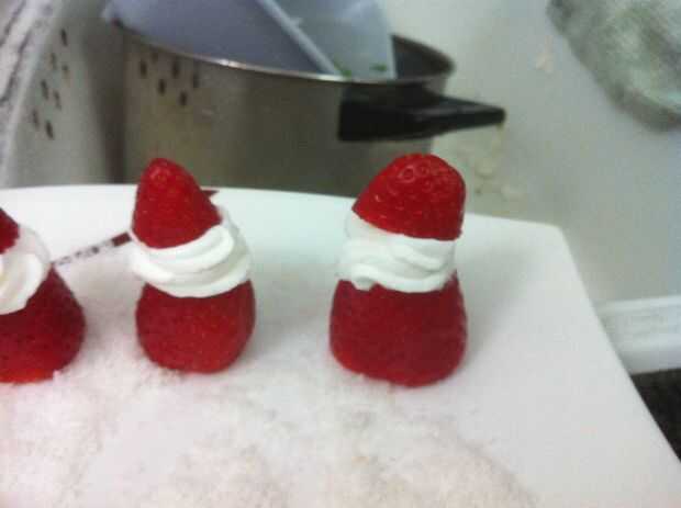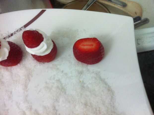 Decorado de postre - Santa Claus de fresas y nata (5 / 8 paso)