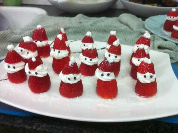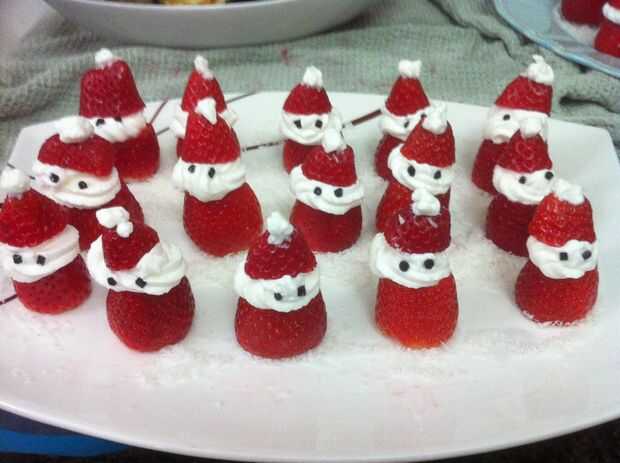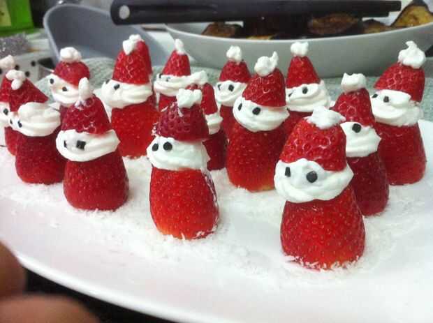 Decorado de postre - Santa Claus de fresas y nata (8 / 8 paso)