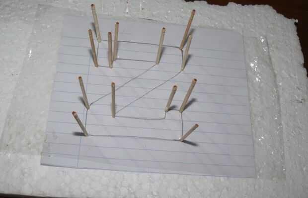 Colocar el papel que usted dibujó la letra sobre la espuma de poliestireno y luego coloca el celofán en él insertar palillos donde deberá conseguir las curvas o esquinas puntiagudas.
