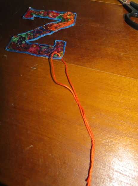 Los lugares donde insertan palillos dejará pequeños agujeros. Pasar por un hilo de algodón de 12" largo trenzado y atar para arriba.