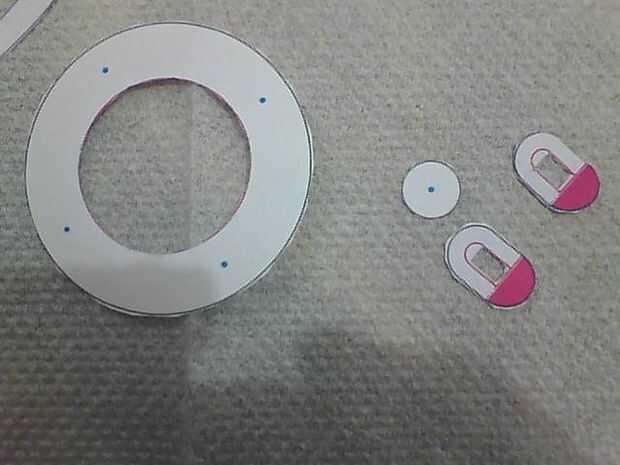 Utilice el cuchillo de la manía para cortar los agujeros marcados con contorno de color rosa y cortar también las necesarias líneas de color rosa...
