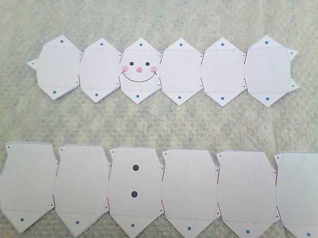 Cortar todas las piezas del muñeco de nieve pdf y luego doblar todos los pliegues necesarios...