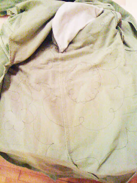 Abrir sus pantalones y dibujar un patrón en el interior, recordando que será imagen del espejo en la parte exterior de la pierna.