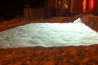 Se me ocurrió que un fresco manto de nieve crea magnífico lienzo en blanco, listo para ser decorado. Pero cómo uno aplica los colores para crear el arte sin dañar la lona por caminar en él. Alquiler de una grúa y colgando de una soga en el estilo de misión imposible puede proporcionar un entretenimiento para sus vecinos, pero no mucho más que sospecho.