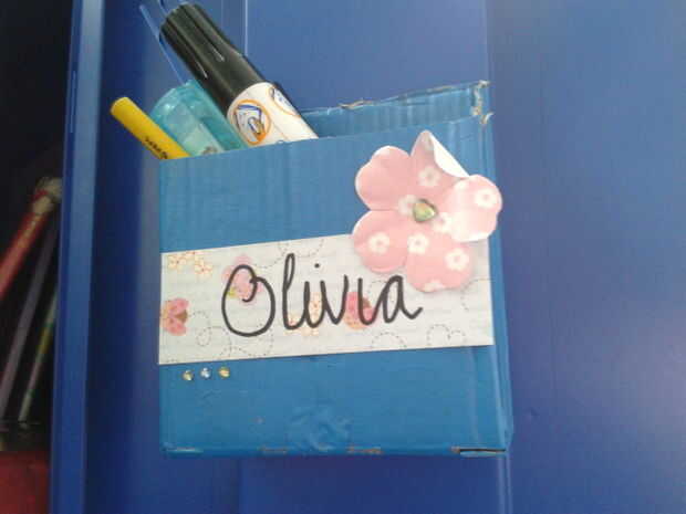 Hacer un portalápices simplemente cortando diagonalmente hacia abajo de la caja y luego decorar. Colocar un imán adhesivo en la parte posterior.