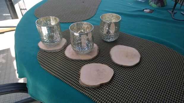 Me sorprende decir que yo Utilice algo que encontré en el lado de la calle para utilizar como decoración para mi boda. Probablemente puede comprar estos en el de Michael para alrededor $2 cada uno, o usted puede cortar una rama de árbol. Conseguí unas ramas de madera, alrededor de 3,5 de diámetro pulg., había encontrado en una acera y había les había picado para arriba en mi sierra para cortar ingletes. Puede lijar ligeramente para deshacerse de las marcas de corte y sellados con laca. Hice bastante para todos el mercurio vidrio velas votivas que compramos.